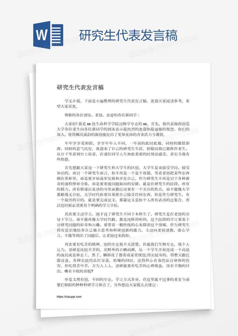 本作品为研究生代表发言稿, 编号:daenwgv82a, 格式为 docx, 大小1 MB, 本作品下载后,先解压,解压之后用推荐软件 Word(2010) 打开, 然后进行编辑功能。