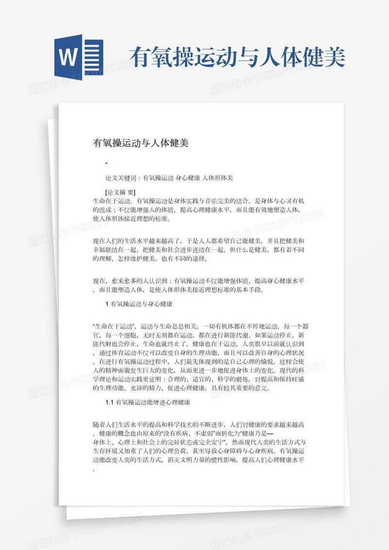 本作品为有氧操运动与人体健美, 编号:daenwkvv2a, 格式为 docx, 大小1 MB, 本作品下载后,先解压,解压之后用推荐软件 Word(2010) 打开, 然后进行编辑功能。