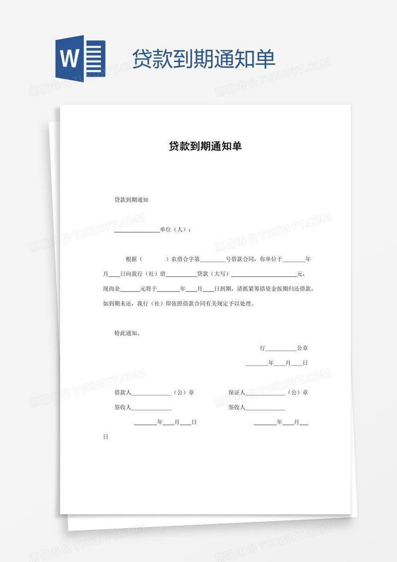 本作品为贷款到期通知单, 编号:daenwl37pa, 格式为 docx, 大小1 MB, 本作品下载后,先解压,解压之后用推荐软件 Word(2010) 打开, 然后进行编辑功能。