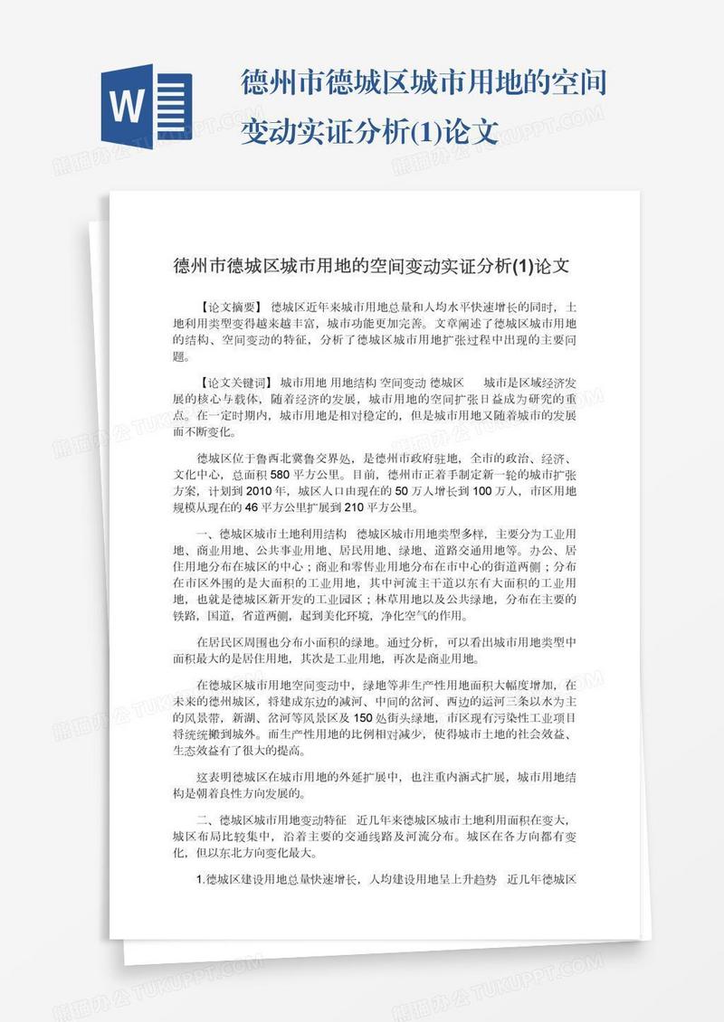 本作品为德州市德城区城市用地的空间变动实证分析(1)论文, 编号:daenwppvra, 格式为 docx, 大小1 MB, 本作品下载后,先解压,解压之后用推荐软件 Word(2010) 打开, 然后进行编辑功能。