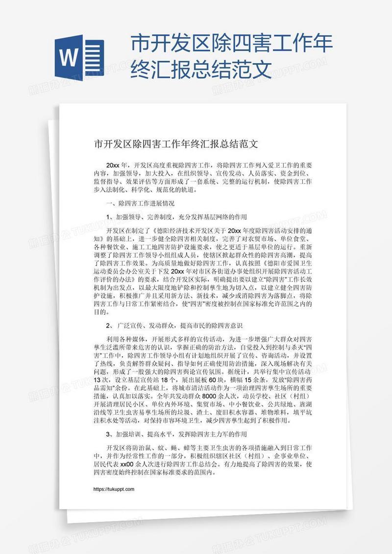 本作品为市开发区除四害工作年终汇报总结范文, 编号:daenwrqgra, 格式为 docx, 大小1 MB, 本作品下载后,先解压,解压之后用推荐软件 Word(2010) 打开, 然后进行编辑功能。