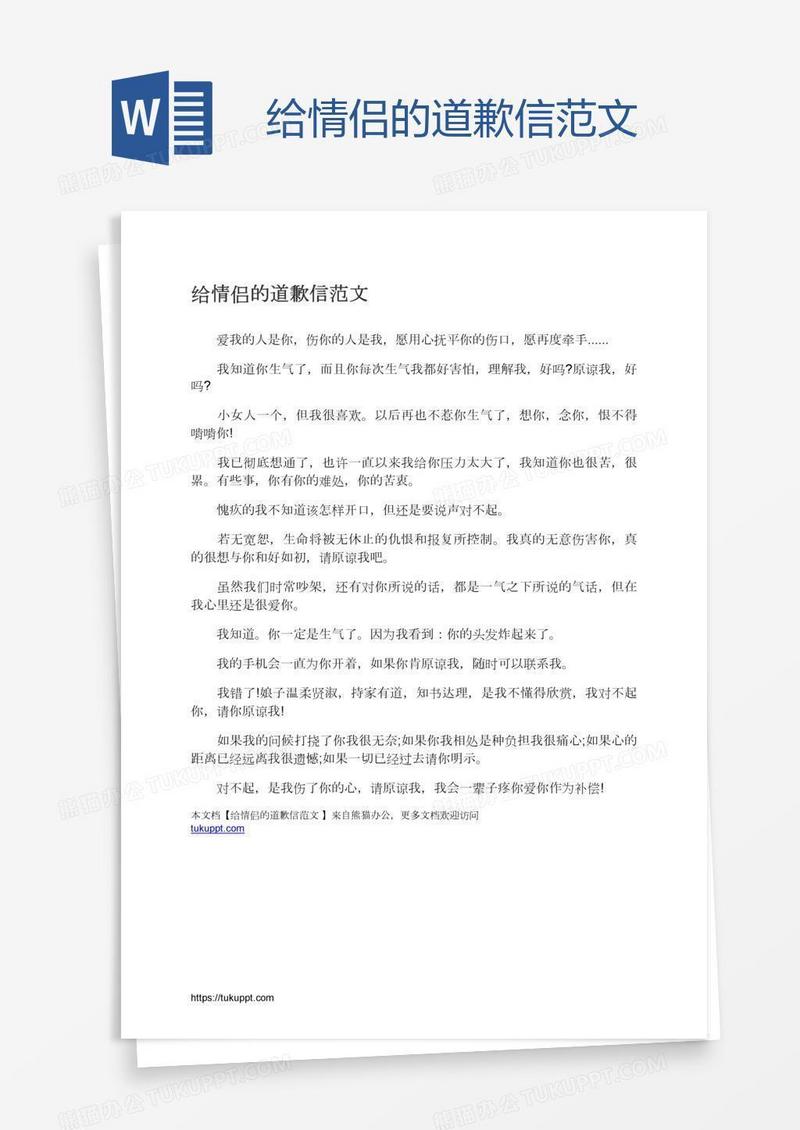 本作品为给情侣的道歉信范文, 编号:daenwvov2a, 格式为 docx, 大小1 MB, 本作品下载后,先解压,解压之后用推荐软件 Word(2010) 打开, 然后进行编辑功能。