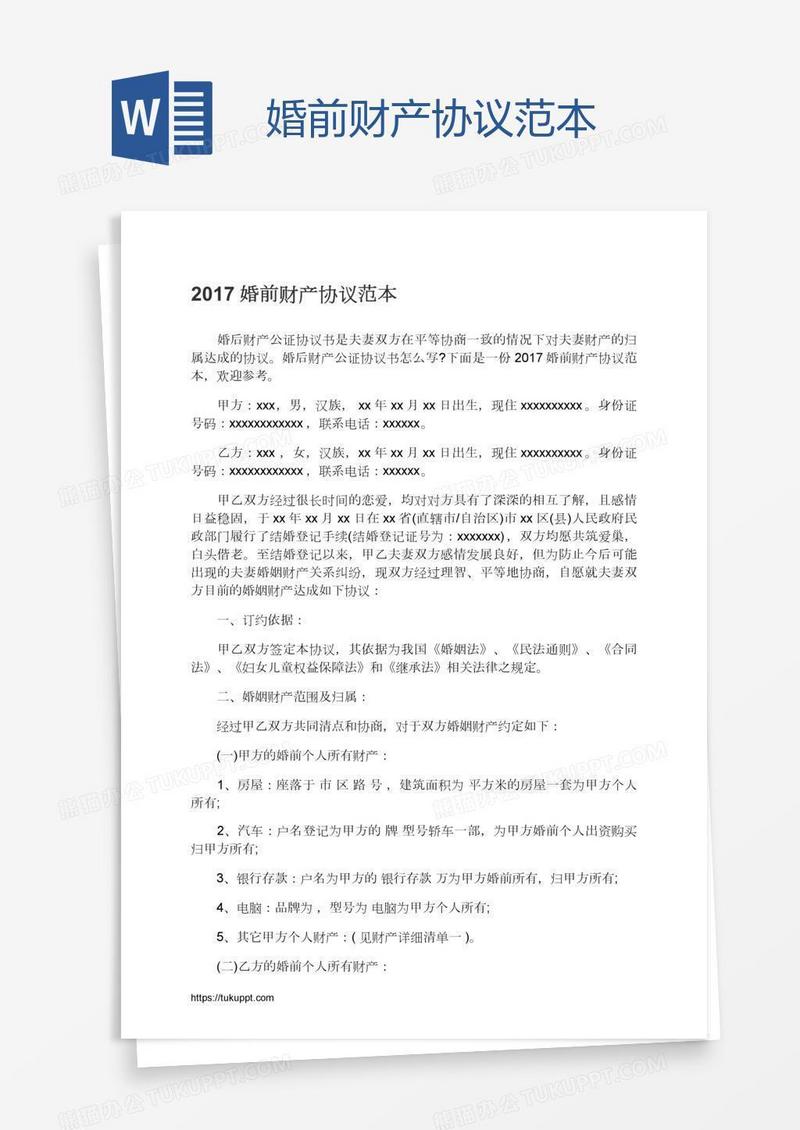 本作品为婚前财产协议范本, 编号:daenww27ba, 格式为 docx, 大小1 MB, 本作品下载后,先解压,解压之后用推荐软件 Word(2010) 打开, 然后进行编辑功能。