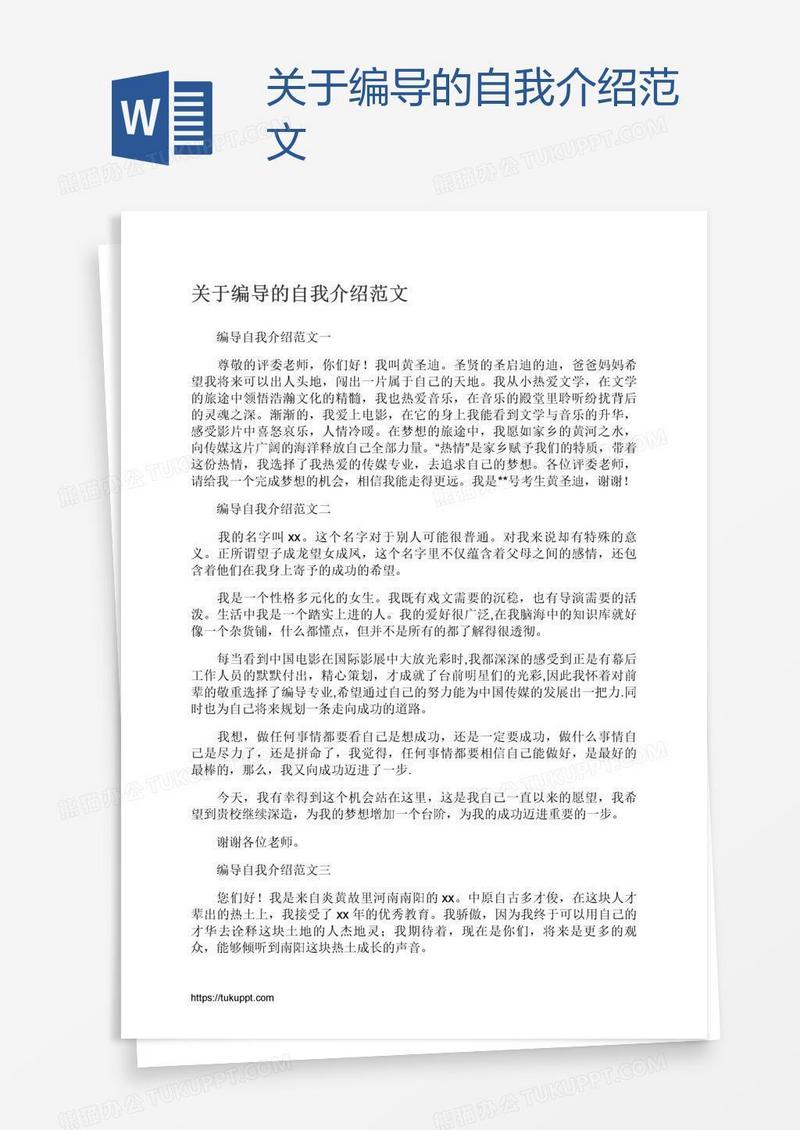 本作品为关于编导的自我介绍范文, 编号:daenwwd6va, 格式为 docx, 大小1 MB, 本作品下载后,先解压,解压之后用推荐软件 Word(2010) 打开, 然后进行编辑功能。