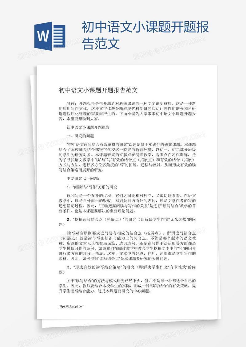本作品为初中语文小课题开题报告范文, 编号:daenwypmra, 格式为 docx, 大小1 MB, 本作品下载后,先解压,解压之后用推荐软件 Word(2010) 打开, 然后进行编辑功能。