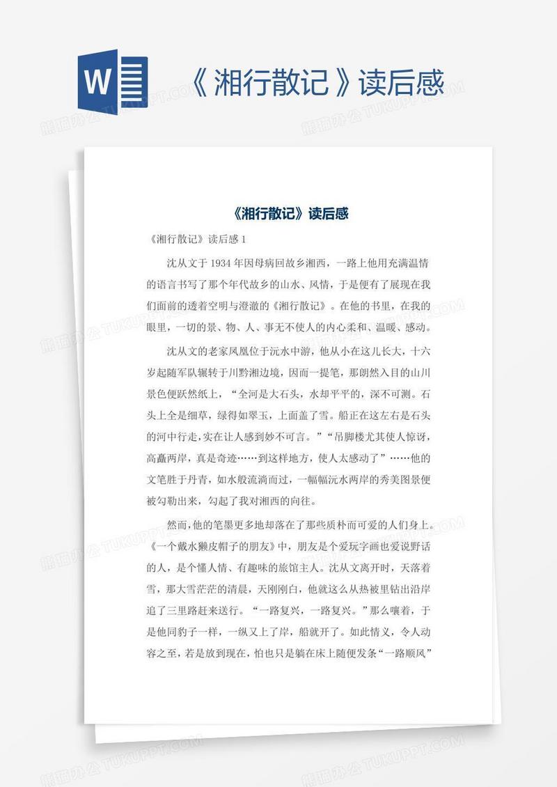 本作品为《湘行散记》读后感, 编号:dawm2bdod1, 格式为 docx, 大小1 MB, 本作品下载后,先解压,解压之后用推荐软件 Word(2010) 打开, 然后进行编辑功能。