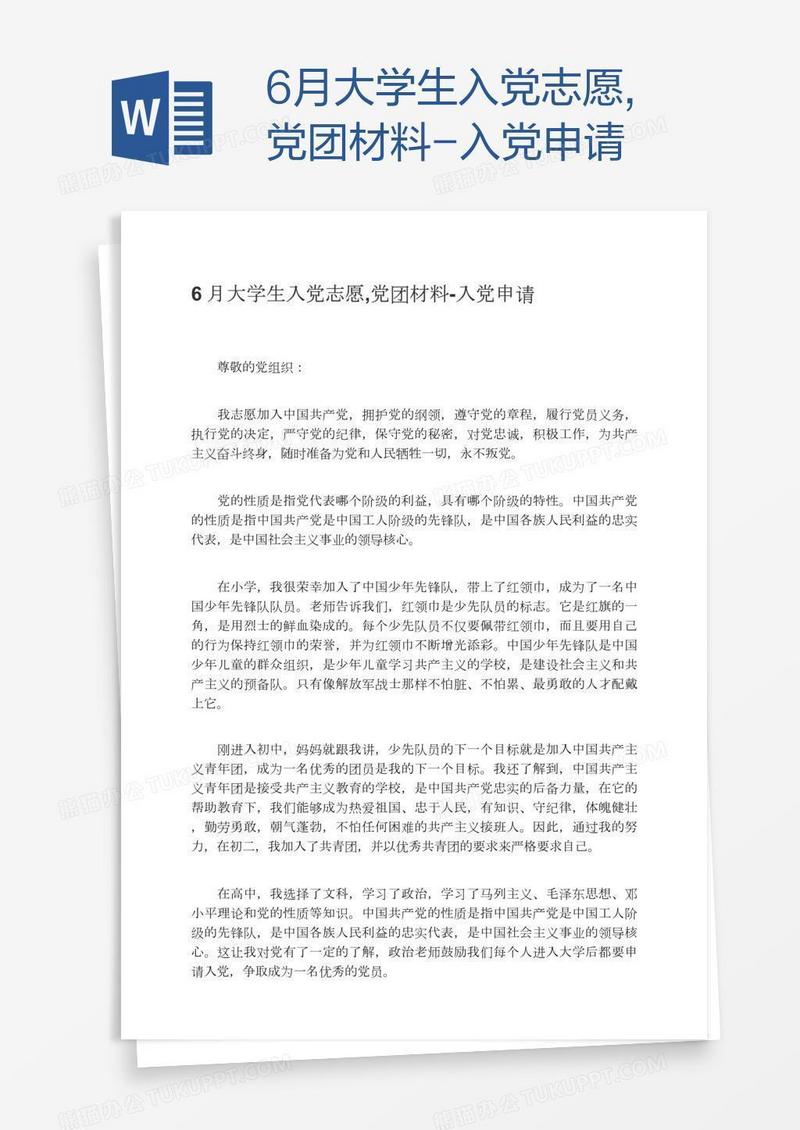 本作品为6月大学生入党志愿,党团材料, 编号:dawm2d6dd1, 格式为 docx, 大小1 MB, 本作品下载后,先解压,解压之后用推荐软件 Word(2010) 打开, 然后进行编辑功能。