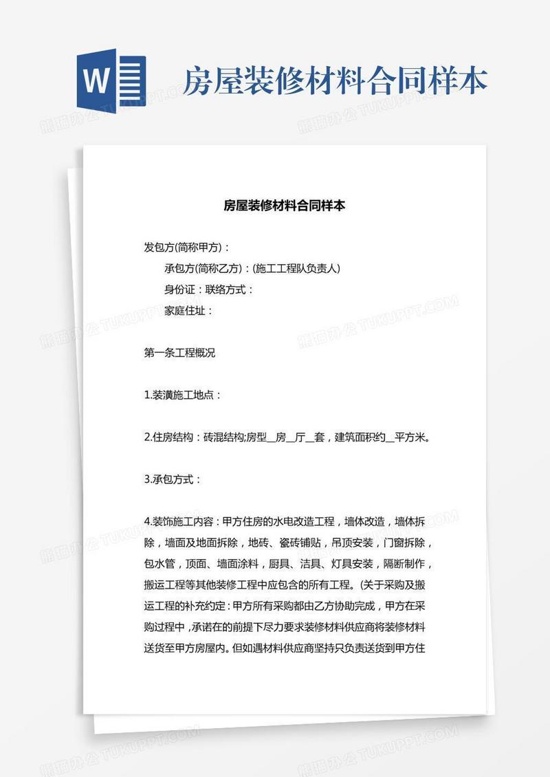 本作品为房屋装修材料合同样本, 编号:dawm6ge7y1, 格式为 docx, 大小1 MB, 本作品下载后,先解压,解压之后用推荐软件 Word(2010) 打开, 然后进行编辑功能。