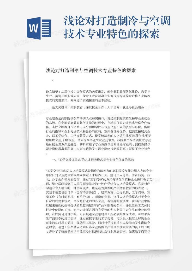本作品为浅论对打造制冷与空调技术专业特色的探索, 编号:dawm6m6lm1, 格式为 docx, 大小1 MB, 本作品下载后,先解压,解压之后用推荐软件 Word(2010) 打开, 然后进行编辑功能。