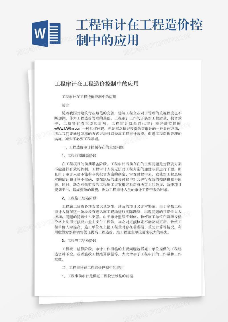本作品为工程审计在工程造价控制中的应用, 编号:dawmk07wm1, 格式为 docx, 大小1 MB, 本作品下载后,先解压,解压之后用推荐软件 Word(2010) 打开, 然后进行编辑功能。