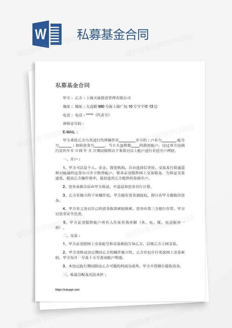 本作品为私募基金合同, 编号:dawmk22gd1, 格式为 docx, 大小1 MB, 本作品下载后,先解压,解压之后用推荐软件 Word(2010) 打开, 然后进行编辑功能。