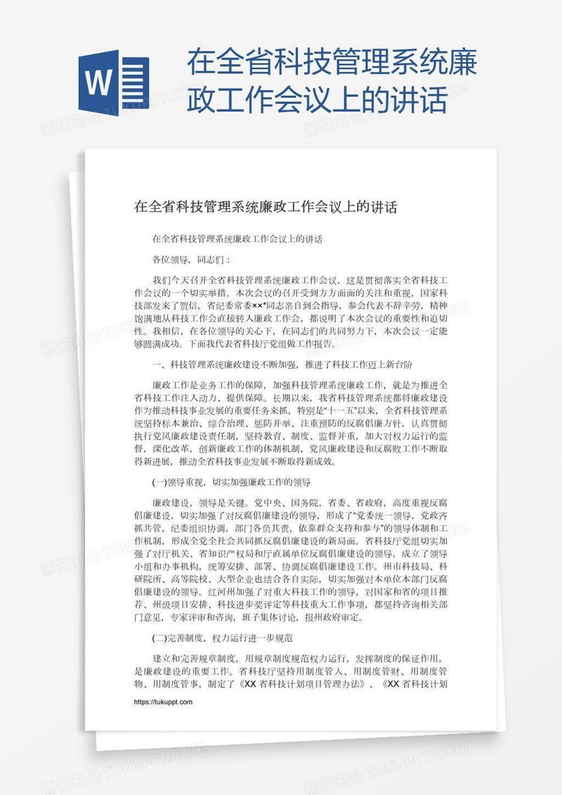 本作品为在全省科技管理系统廉政工作会议上的讲话, 编号:dawmk83jm1, 格式为 docx, 大小1 MB, 本作品下载后,先解压,解压之后用推荐软件 Word(2010) 打开, 然后进行编辑功能。