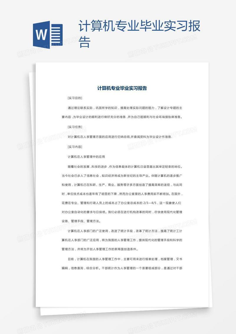 本作品为计算机专业毕业实习报告, 编号:dawmkj3541, 格式为 docx, 大小1 MB, 本作品下载后,先解压,解压之后用推荐软件 Word(2010) 打开, 然后进行编辑功能。