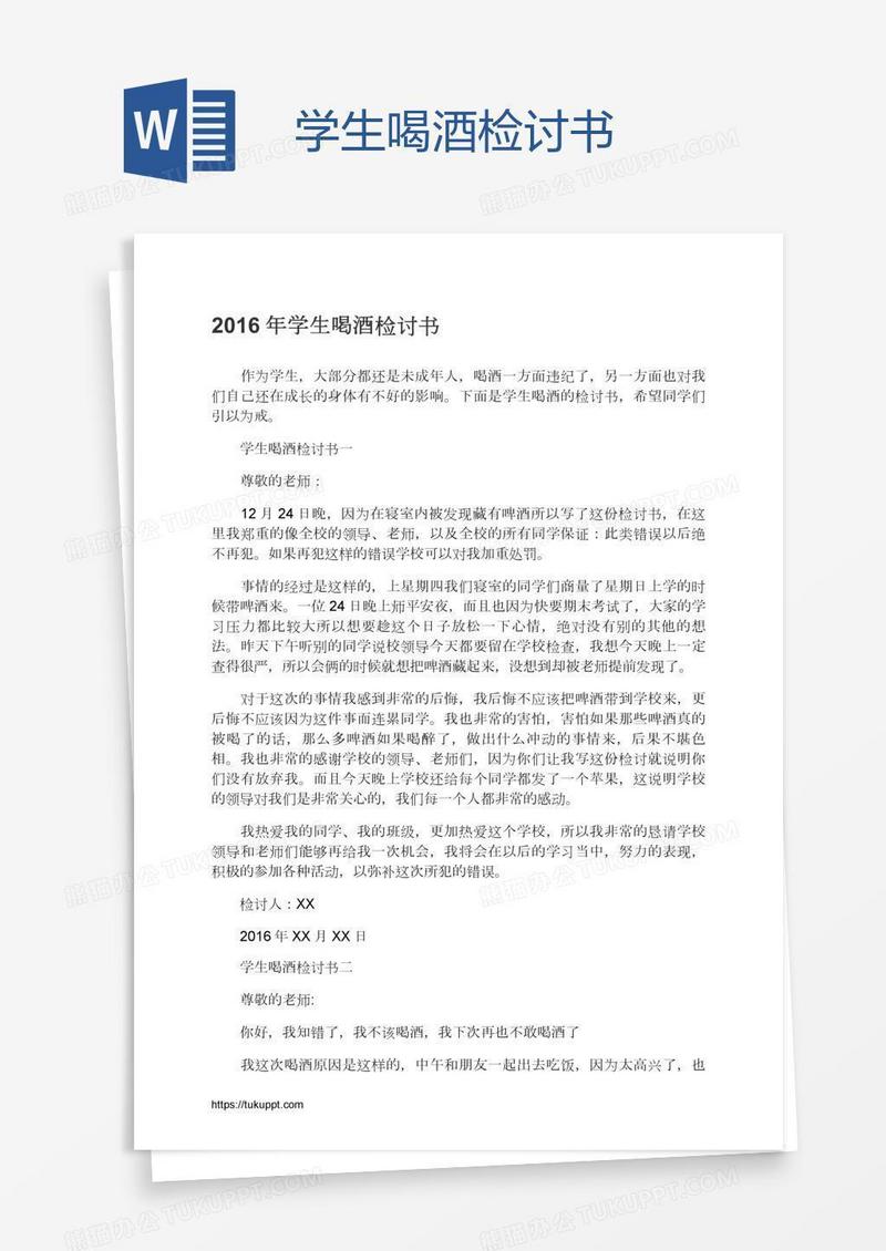 本作品为学生喝酒检讨书, 编号:dawmkkvr61, 格式为 docx, 大小1 MB, 本作品下载后,先解压,解压之后用推荐软件 Word(2010) 打开, 然后进行编辑功能。
