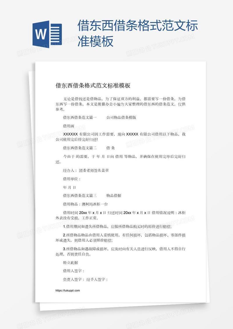 本作品为借东西借条格式范文标准模板, 编号:dawmkm8841, 格式为 docx, 大小1 MB, 本作品下载后,先解压,解压之后用推荐软件 Word(2010) 打开, 然后进行编辑功能。