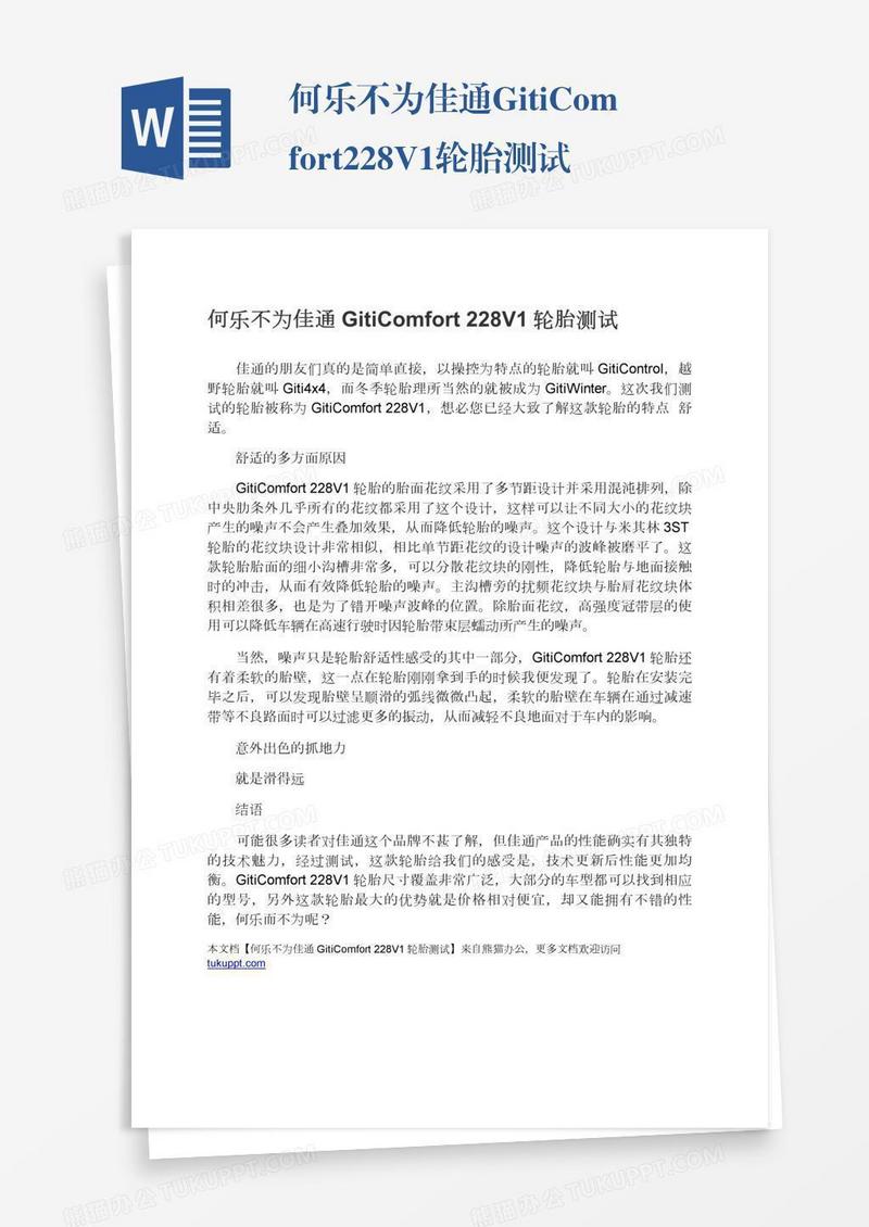 本作品为何乐不为佳通GitiComfort228V1轮胎测试, 编号:dawmkvnd81, 格式为 docx, 大小1 MB, 本作品下载后,先解压,解压之后用推荐软件 Word(2010) 打开, 然后进行编辑功能。