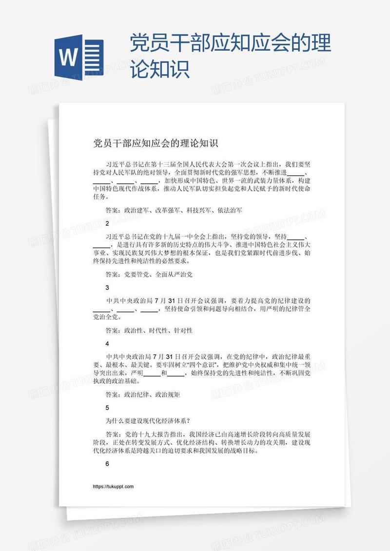 本作品为党员干部应知应会的理论知识, 编号:dawmkwve81, 格式为 docx, 大小1 MB, 本作品下载后,先解压,解压之后用推荐软件 Word(2010) 打开, 然后进行编辑功能。
