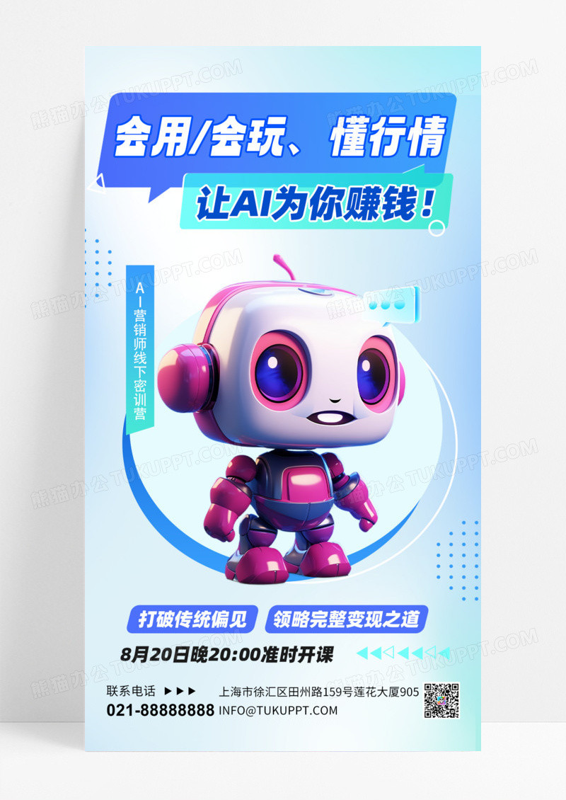 本作品为蓝色渐变科技培训AI课程培训3D元宇宙科技风人物科技风海报手机海报, 编号:g9r44kgk31, 格式为 psd, 大小8 MB, 本作品下载后,先解压,解压之后用推荐软件 PhotoShop(CC) 打开, 然后进行编辑功能。