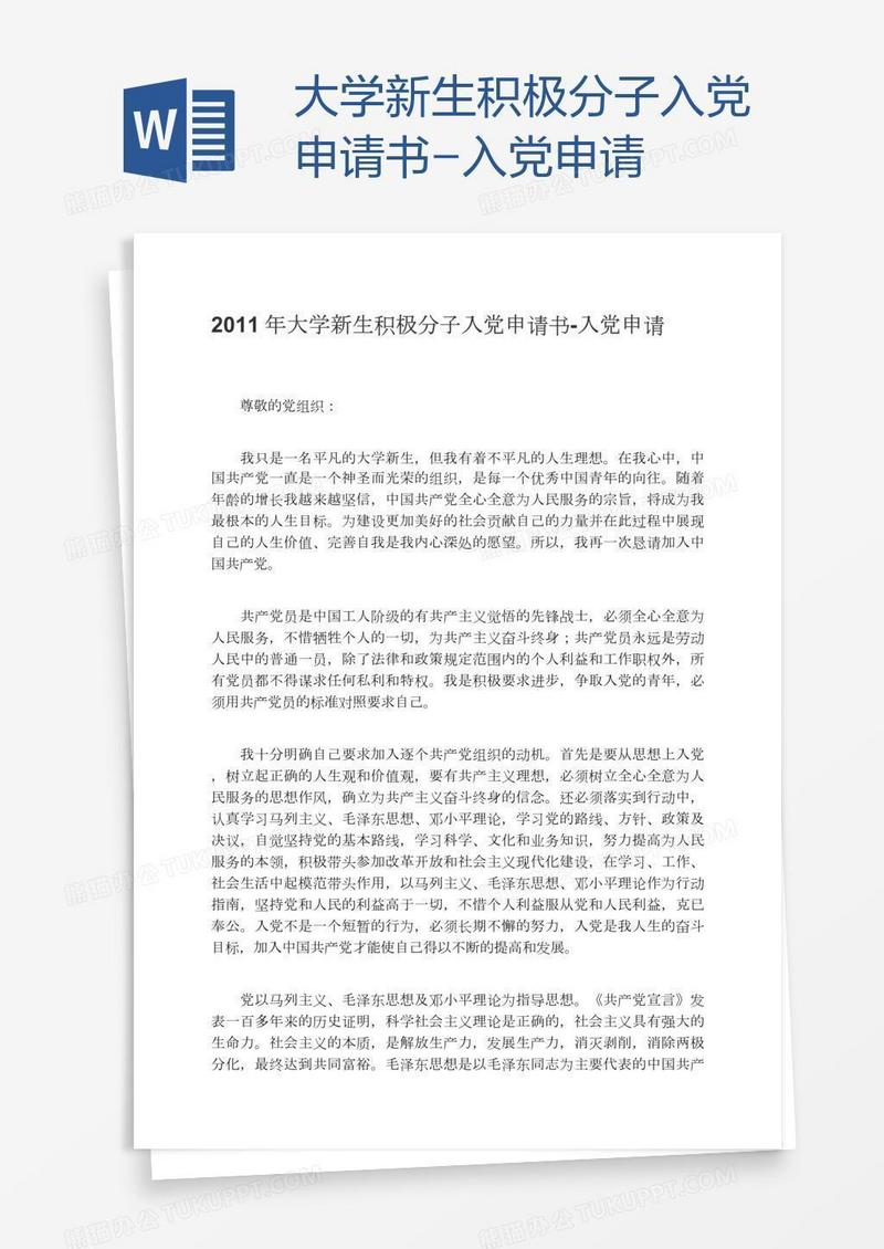 本作品为大学新生积极分子入党申请书, 编号:g9rv5o6oj1, 格式为 docx, 大小1 MB, 本作品下载后,先解压,解压之后用推荐软件 Word(2010) 打开, 然后进行编辑功能。
