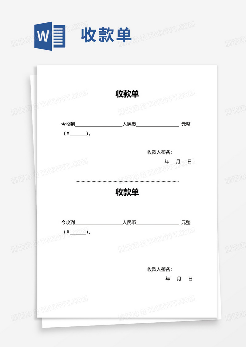 本作品为收款单word模板, 编号:g9rv6k53l1, 格式为 docx, 大小1 MB, 本作品下载后,先解压,解压之后用推荐软件 Word(2019) 打开, 然后进行编辑功能。