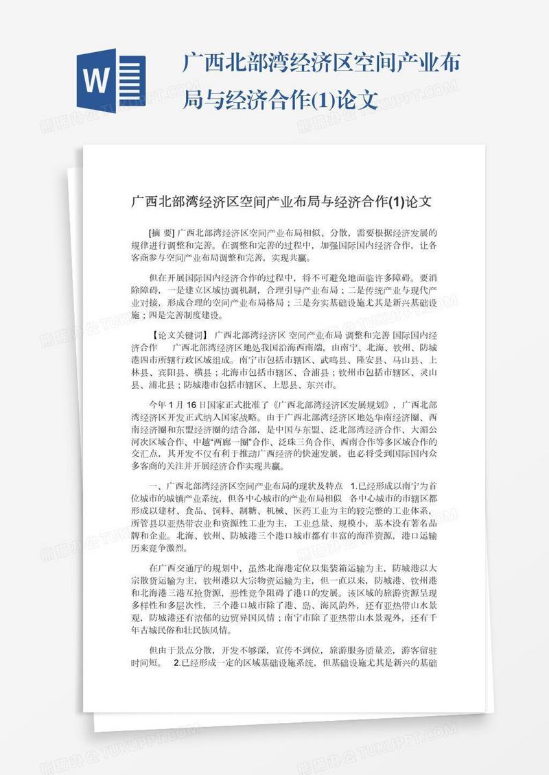 本作品为广西北部湾经济区空间产业布局与经济合作(1)论文, 编号:g9rvb336j1, 格式为 docx, 大小1 MB, 本作品下载后,先解压,解压之后用推荐软件 Word(2010) 打开, 然后进行编辑功能。