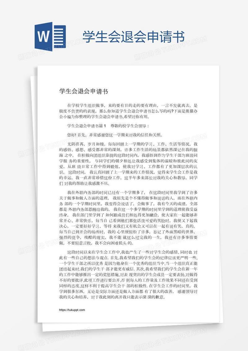 本作品为学生会退会申请书, 编号:g9rvb526w1, 格式为 docx, 大小1 MB, 本作品下载后,先解压,解压之后用推荐软件 Word(2010) 打开, 然后进行编辑功能。