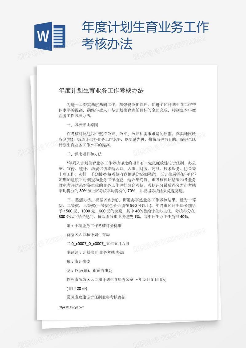 本作品为年度计划生育业务工作考核办法, 编号:g9rvb83gj1, 格式为 docx, 大小1 MB, 本作品下载后,先解压,解压之后用推荐软件 Word(2010) 打开, 然后进行编辑功能。