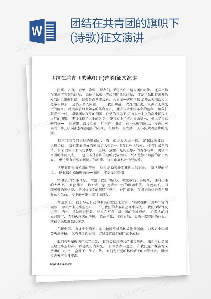 本作品为团结在共青团的旗帜下(诗歌)征文演讲, 编号:g9rvbdmj41, 格式为 docx, 大小1 MB, 本作品下载后,先解压,解压之后用推荐软件 Word(2010) 打开, 然后进行编辑功能。