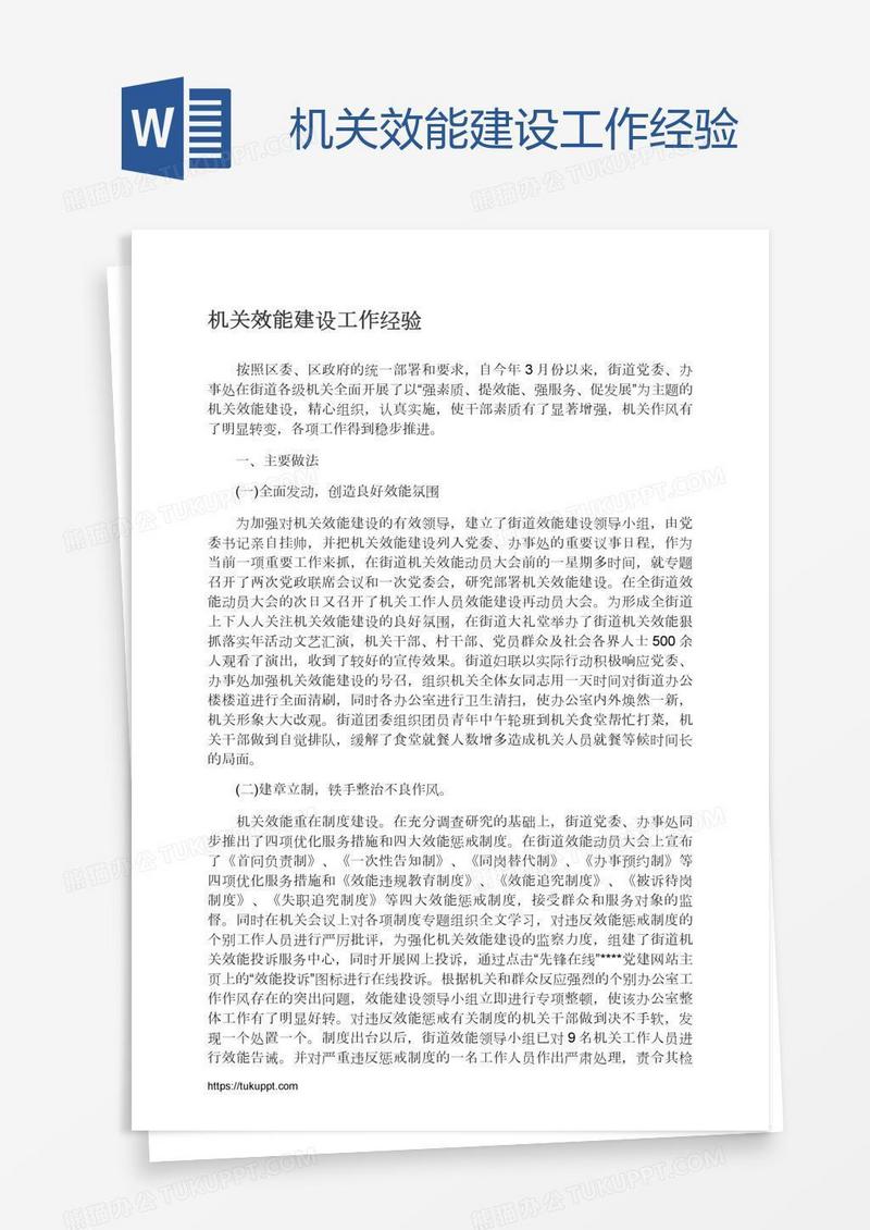 本作品为机关效能建设工作经验, 编号:g9rvbjmwl1, 格式为 docx, 大小1 MB, 本作品下载后,先解压,解压之后用推荐软件 Word(2010) 打开, 然后进行编辑功能。