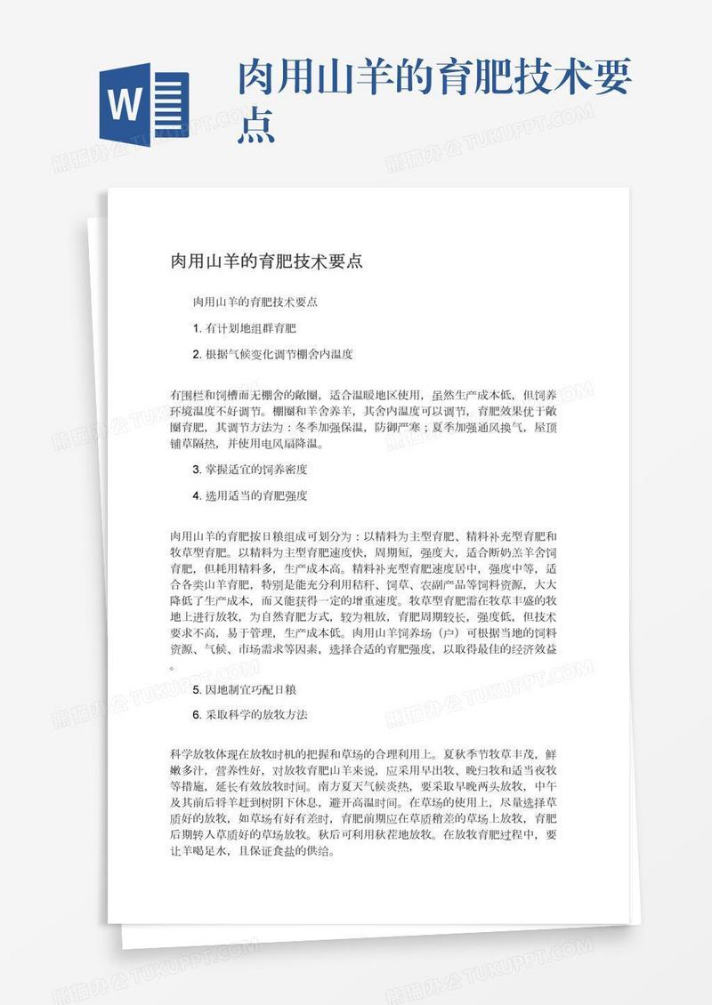 本作品为肉用山羊的育肥技术要点, 编号:k1b2702pb1, 格式为 docx, 大小1 MB, 本作品下载后,先解压,解压之后用推荐软件 Word(2010) 打开, 然后进行编辑功能。