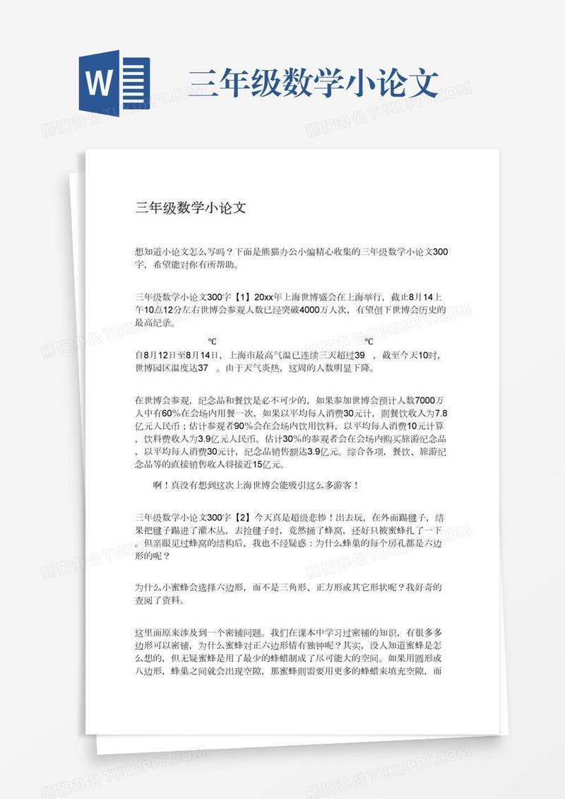 本作品为三年级数学小论文, 编号:k1b270gmm1, 格式为 docx, 大小1 MB, 本作品下载后,先解压,解压之后用推荐软件 Word(2010) 打开, 然后进行编辑功能。