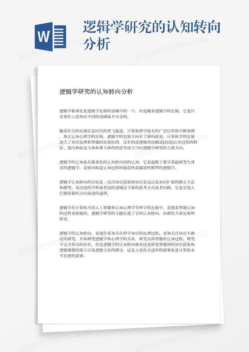 本作品为逻辑学研究的认知转向分析, 编号:k1b277d5b1, 格式为 docx, 大小1 MB, 本作品下载后,先解压,解压之后用推荐软件 Word(2010) 打开, 然后进行编辑功能。