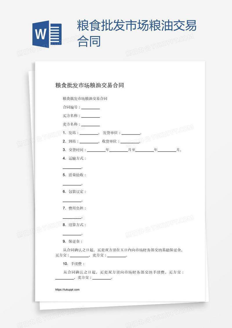 本作品为粮食批发市场粮油交易合同, 编号:k1b2kd7vd1, 格式为 docx, 大小1 MB, 本作品下载后,先解压,解压之后用推荐软件 Word(2010) 打开, 然后进行编辑功能。