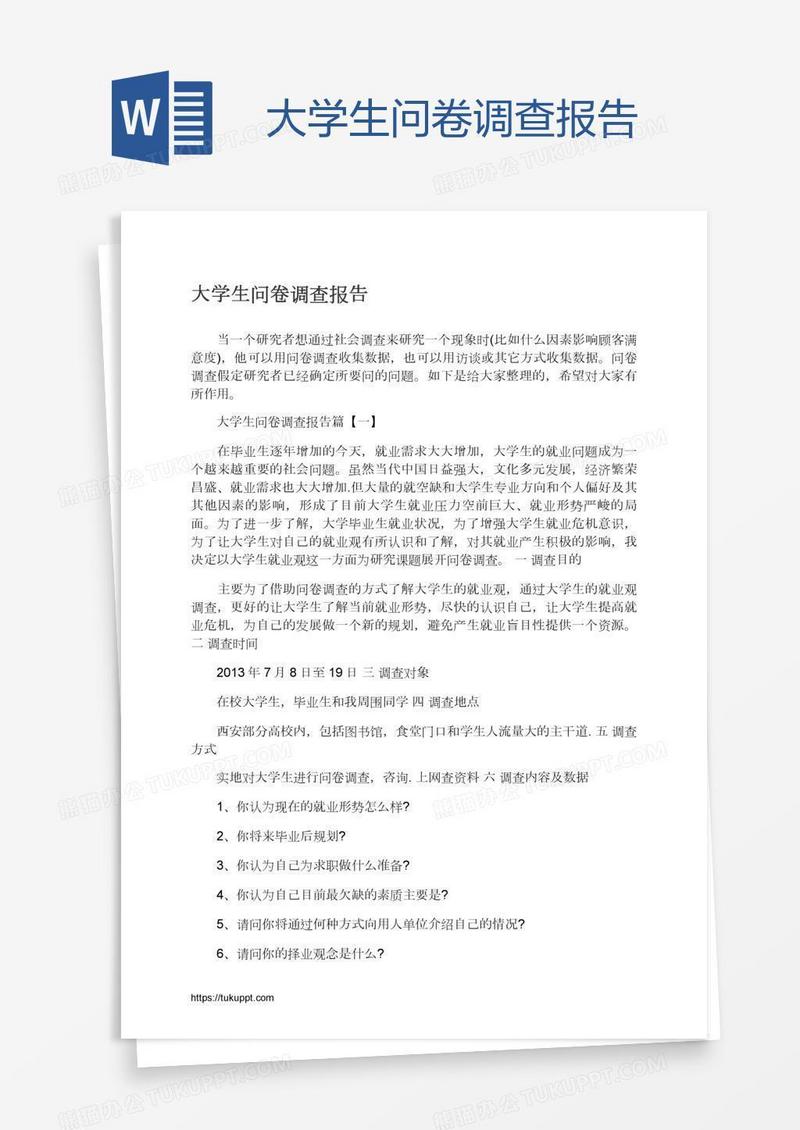 本作品为大学生问卷调查报告, 编号:k1b2krnbp1, 格式为 docx, 大小1 MB, 本作品下载后,先解压,解压之后用推荐软件 Word(2010) 打开, 然后进行编辑功能。