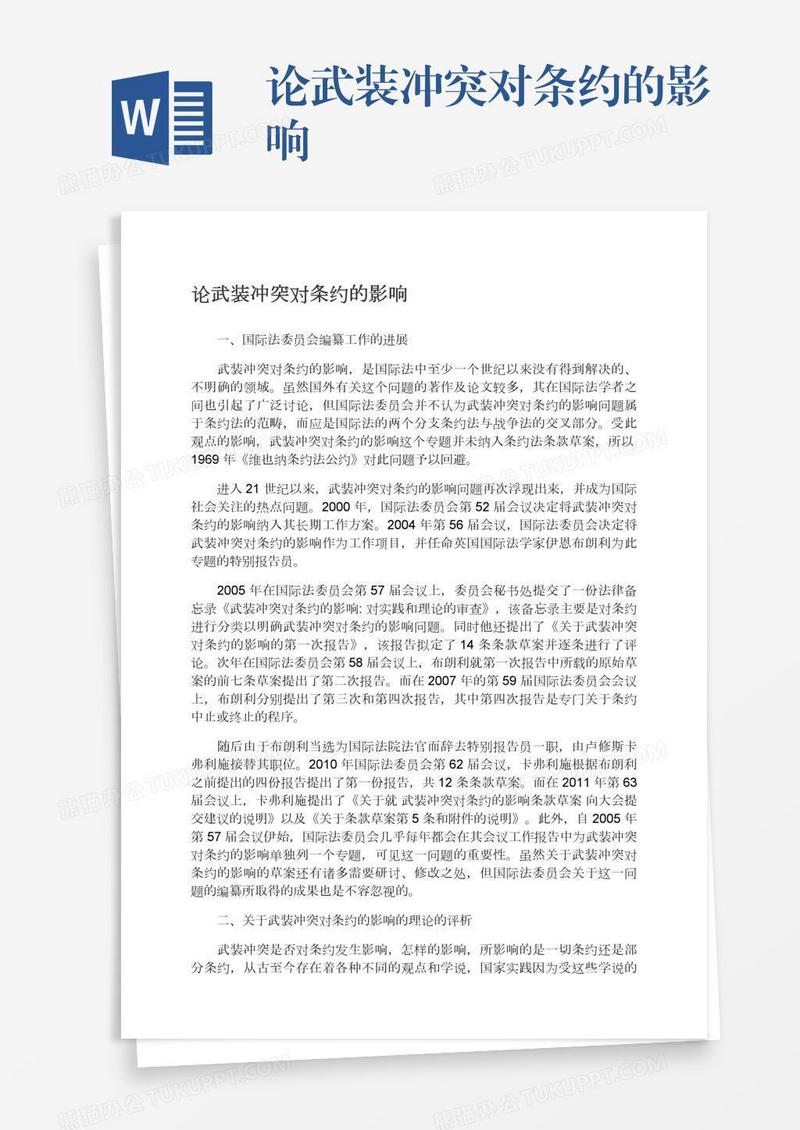 本作品为论武装冲突对条约的影响, 编号:k1b2kymqp1, 格式为 docx, 大小1 MB, 本作品下载后,先解压,解压之后用推荐软件 Word(2010) 打开, 然后进行编辑功能。