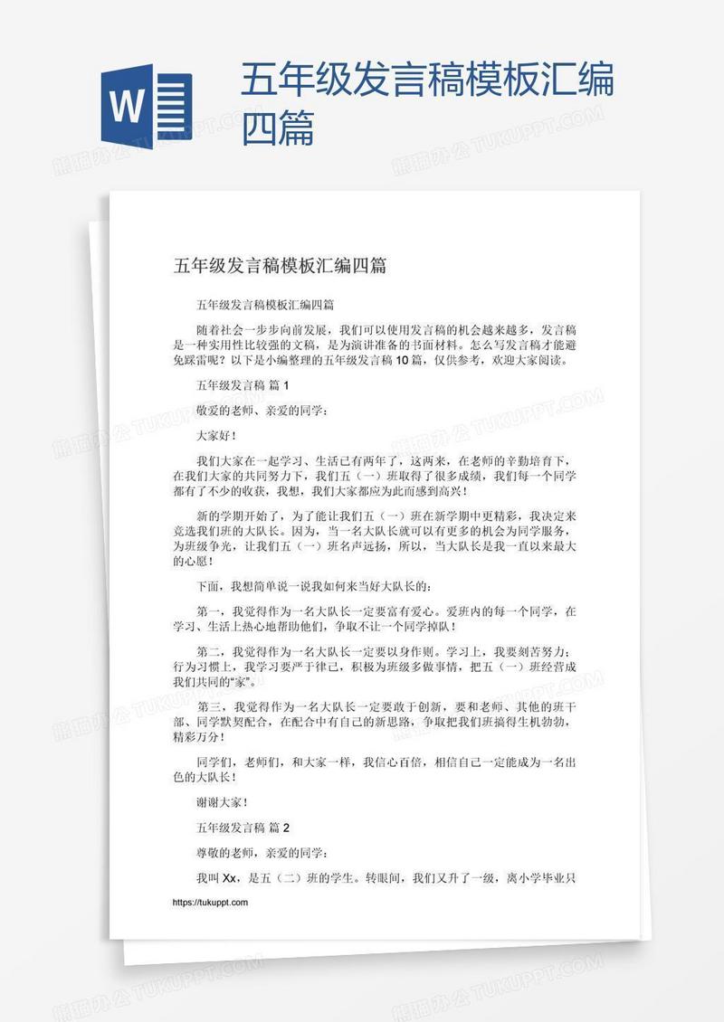 本作品为五年级发言稿模板汇编四篇, 编号:k1b2r67qp1, 格式为 docx, 大小1 MB, 本作品下载后,先解压,解压之后用推荐软件 Word(2010) 打开, 然后进行编辑功能。