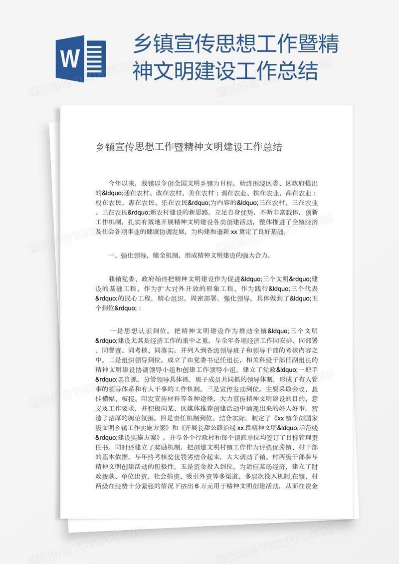 本作品为乡镇宣传思想工作暨精神文明建设工作总结, 编号:k1b2rpgnd1, 格式为 docx, 大小1 MB, 本作品下载后,先解压,解压之后用推荐软件 Word(2010) 打开, 然后进行编辑功能。