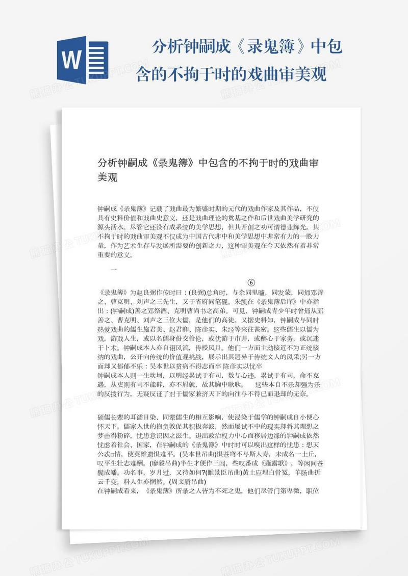 本作品为 分析钟嗣成《录鬼簿》中包含的不拘于时的戏曲审美观, 编号:k1n232q5j1, 格式为 docx, 大小1 MB, 本作品下载后,先解压,解压之后用推荐软件 Word(2010) 打开, 然后进行编辑功能。
