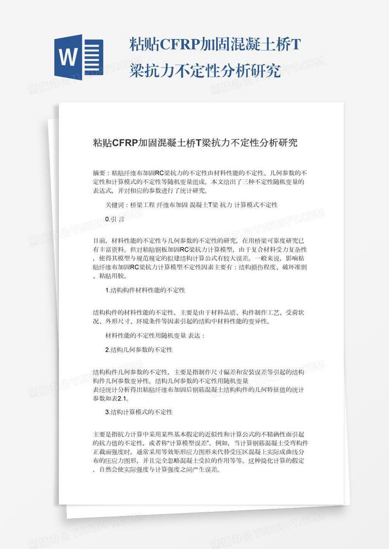 本作品为粘贴CFRP加固混凝土桥T梁抗力不定性分析研究, 编号:k1n23333p1, 格式为 docx, 大小1 MB, 本作品下载后,先解压,解压之后用推荐软件 Word(2010) 打开, 然后进行编辑功能。