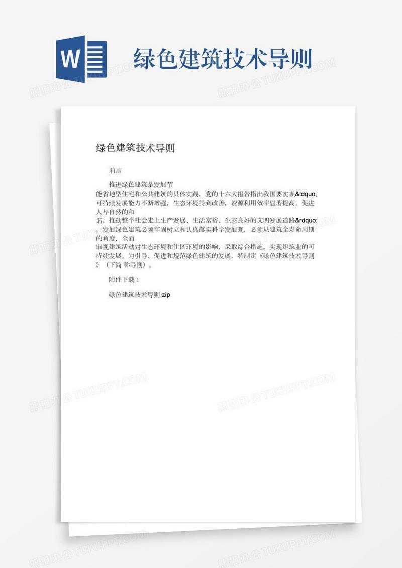 本作品为绿色建筑技术导则, 编号:k1n23mo7q1, 格式为 docx, 大小1 MB, 本作品下载后,先解压,解压之后用推荐软件 Word(2010) 打开, 然后进行编辑功能。
