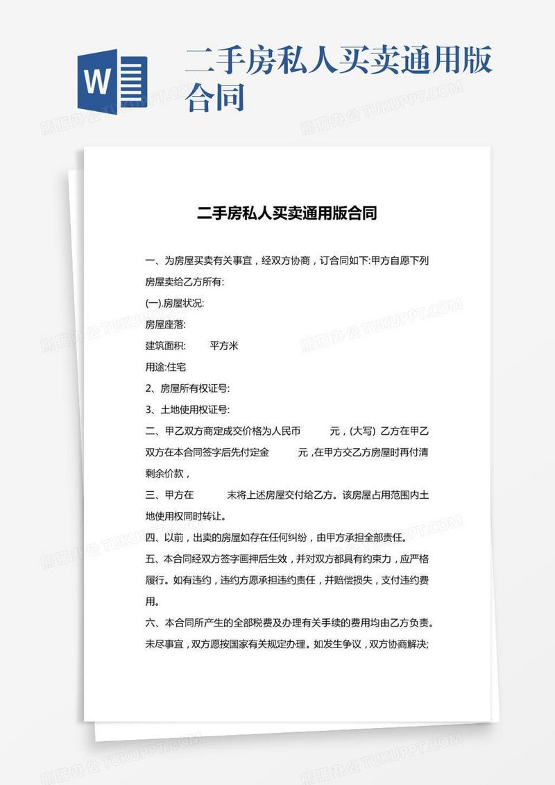 本作品为二手房私人买卖通用版合同, 编号:k1n23o6oq1, 格式为 docx, 大小1 MB, 本作品下载后,先解压,解压之后用推荐软件 Word(2010) 打开, 然后进行编辑功能。