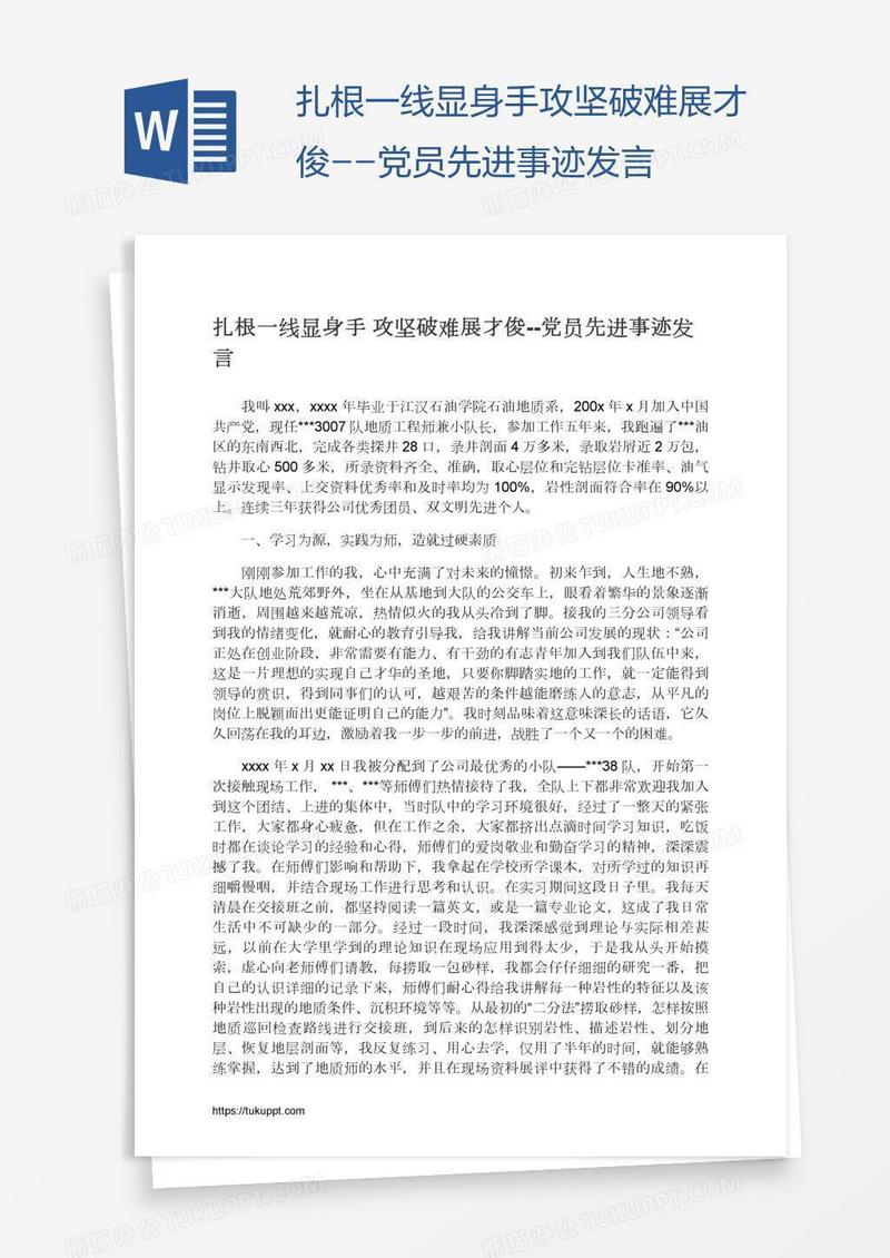本作品为扎根一线显身手攻坚破难展才俊--党员先进事迹发言, 编号:k1n2mdkj41, 格式为 docx, 大小1 MB, 本作品下载后,先解压,解压之后用推荐软件 Word(2010) 打开, 然后进行编辑功能。