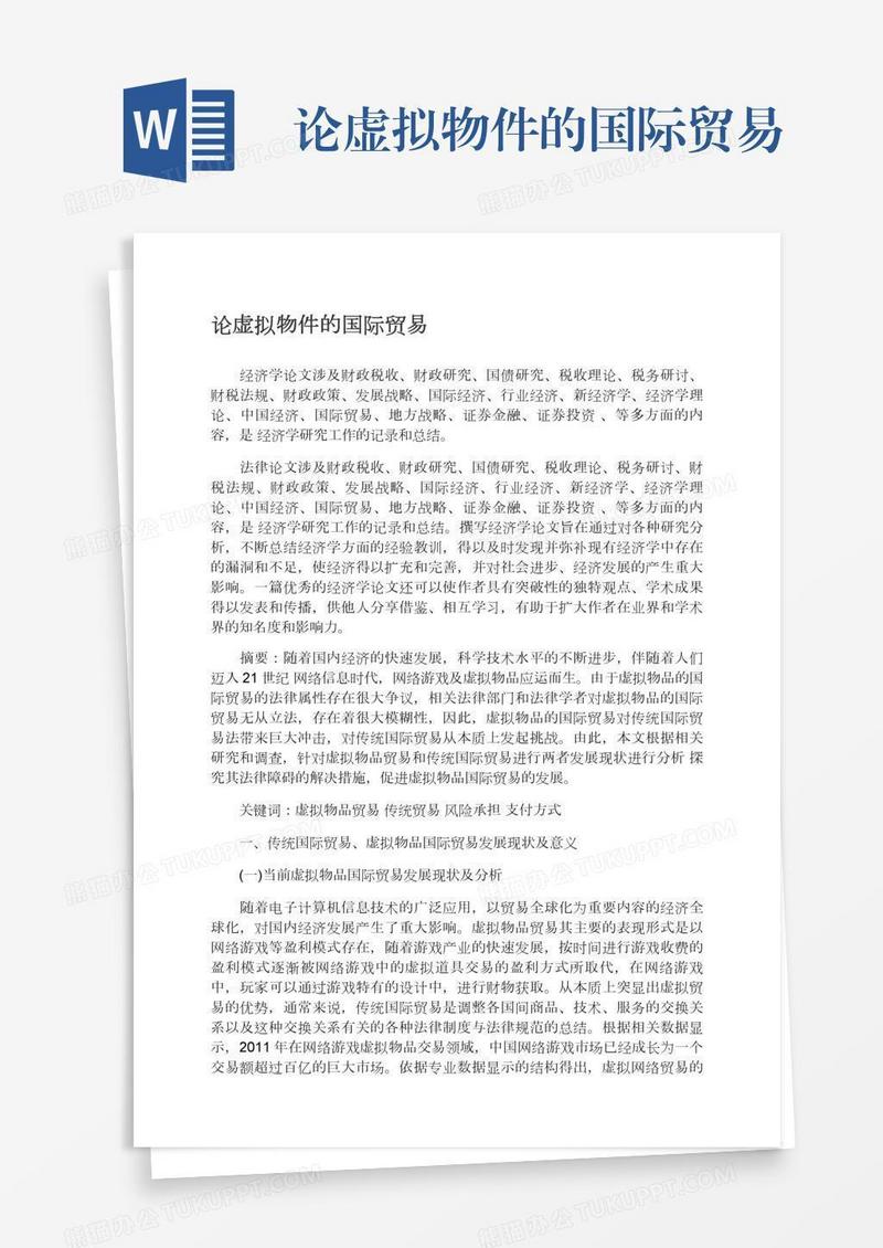 本作品为论虚拟物件的国际贸易, 编号:k1n2memjp1, 格式为 docx, 大小1 MB, 本作品下载后,先解压,解压之后用推荐软件 Word(2010) 打开, 然后进行编辑功能。