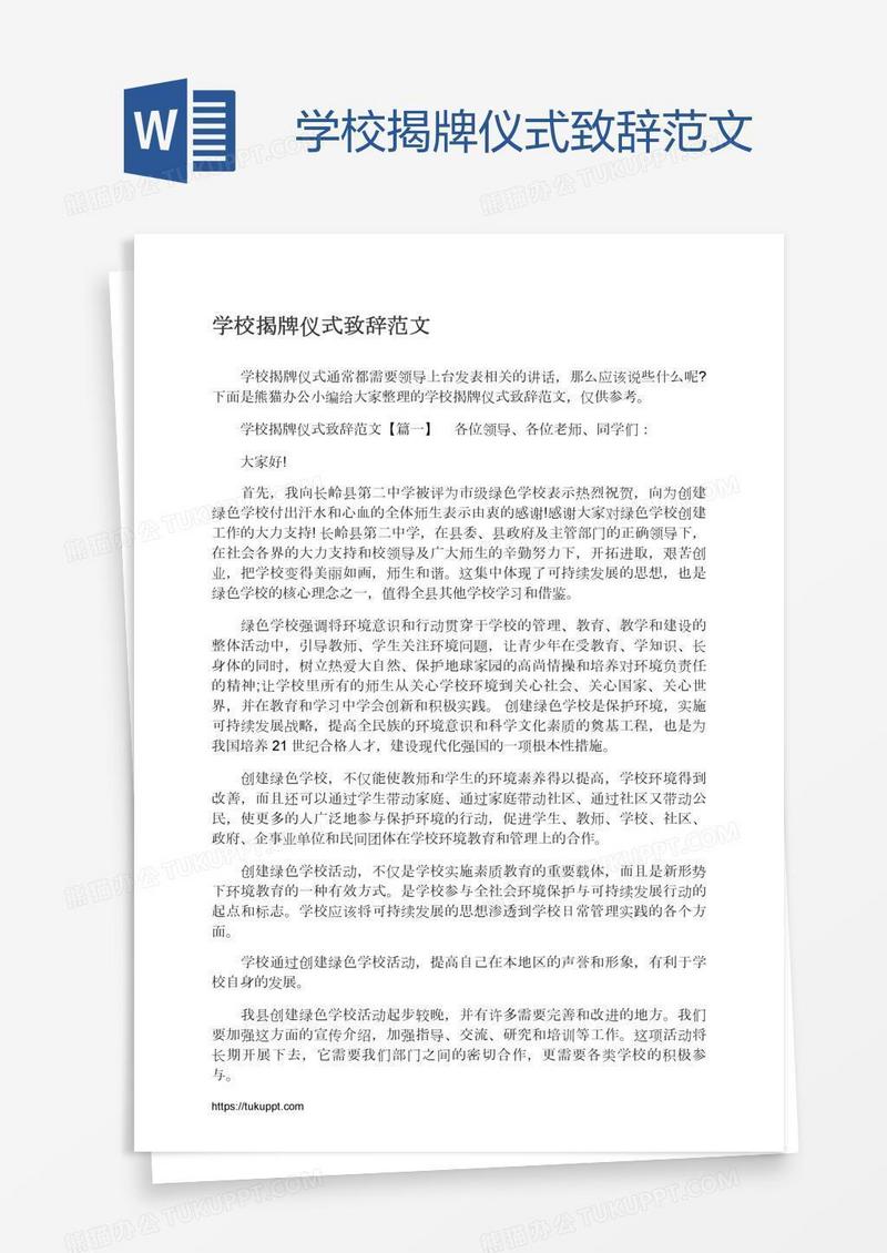 本作品为学校揭牌仪式致辞范文, 编号:k1n2mg24p1, 格式为 docx, 大小1 MB, 本作品下载后,先解压,解压之后用推荐软件 Word(2010) 打开, 然后进行编辑功能。