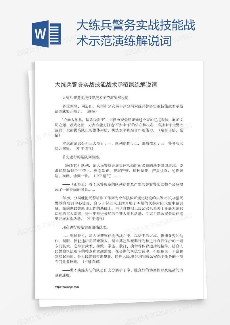 大练兵警务实战技能战术示范演练解说词礼仪主持
