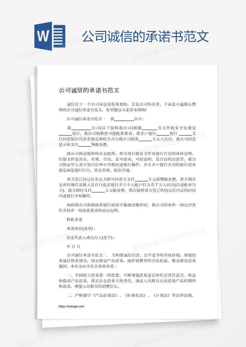 本作品为公司诚信的承诺书范文, 编号:k1n2mmk2q1, 格式为 docx, 大小1 MB, 本作品下载后,先解压,解压之后用推荐软件 Word(2010) 打开, 然后进行编辑功能。