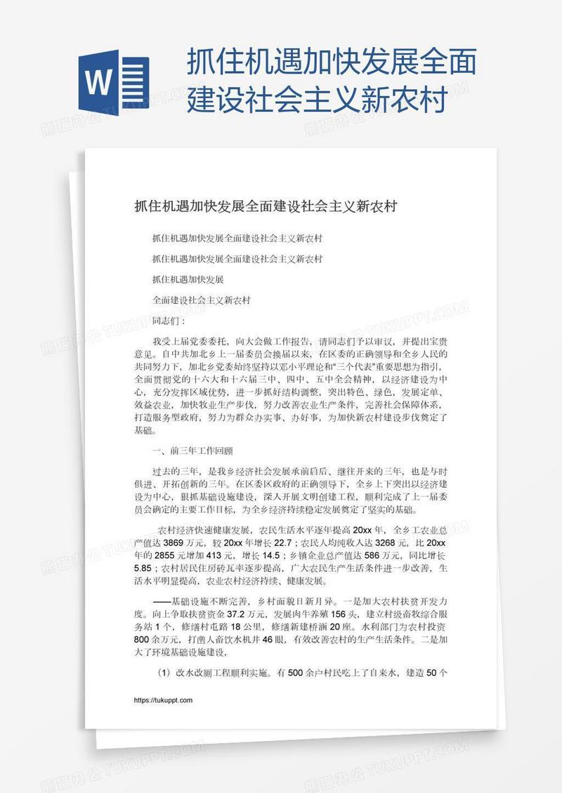 本作品为抓住机遇加快发展全面建设社会主义新农村, 编号:k1n2mp3841, 格式为 docx, 大小1 MB, 本作品下载后,先解压,解压之后用推荐软件 Word(2010) 打开, 然后进行编辑功能。