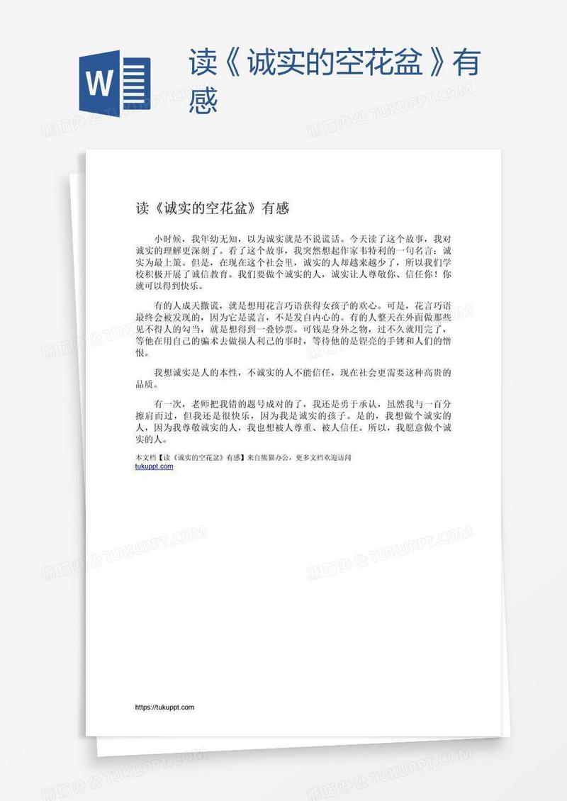 本作品为读《诚实的空花盆》有感, 编号:k1n2mpgmn1, 格式为 docx, 大小1 MB, 本作品下载后,先解压,解压之后用推荐软件 Word(2010) 打开, 然后进行编辑功能。