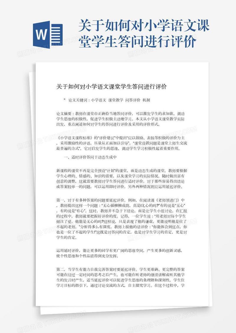 本作品为关于如何对小学语文课堂学生答问进行评价, 编号:k1n2mq0641, 格式为 docx, 大小1 MB, 本作品下载后,先解压,解压之后用推荐软件 Word(2010) 打开, 然后进行编辑功能。