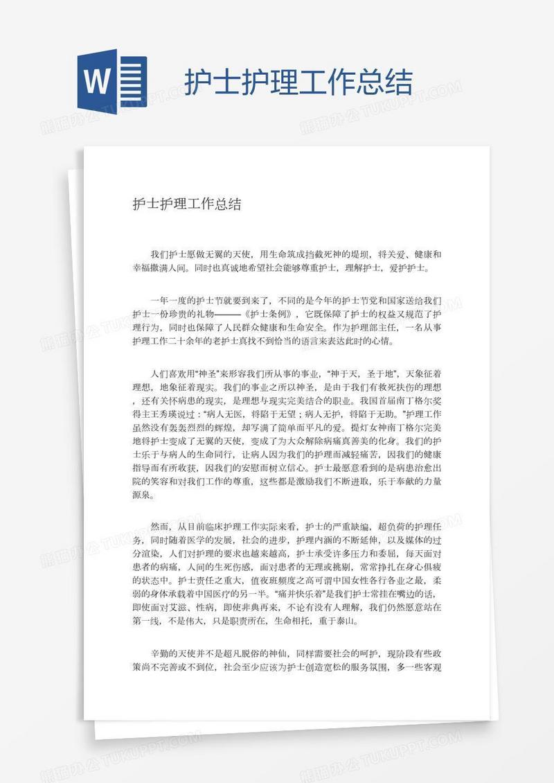 本作品为护士护理工作总结, 编号:k1n2neq3n1, 格式为 docx, 大小1 MB, 本作品下载后,先解压,解压之后用推荐软件 Word(2010) 打开, 然后进行编辑功能。
